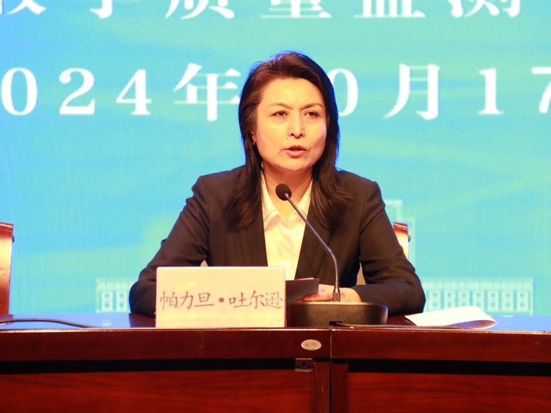 为进一步做好2024年高等教育质量监测国家数据平台的数据填报工作,提高数据填报质量,确保数据采集和填报任务按时完成,10月17日上午,我校在温泉校区后勤楼二楼报告厅召开了高等教育质量监测国家数据平台数据采集工作培训会。校党委常委、副校长帕力旦·吐尔逊出席会议并讲话,相关职能部门领导及填报人员、各学院领导及填报人员等50余人参加会议。会议由教务处处长路俊哲主持。