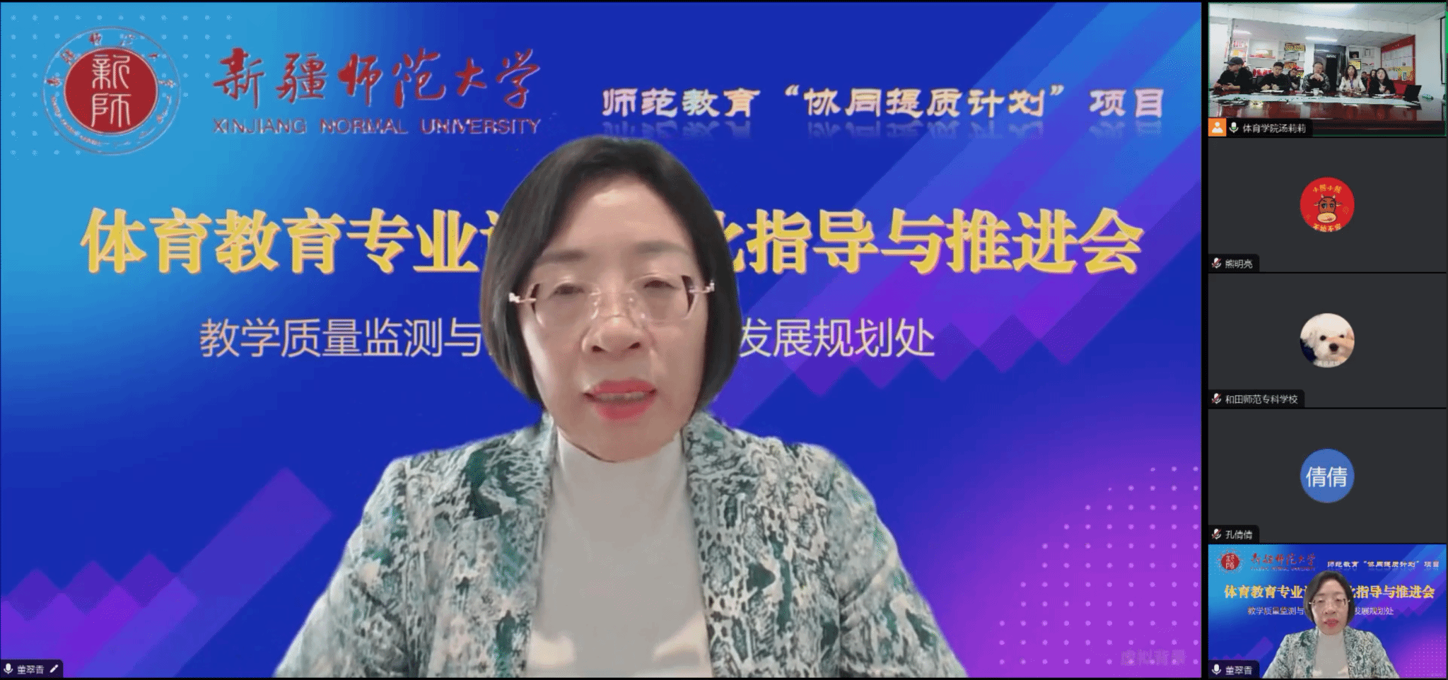 为全面推进我校师范专业认证工作,整体提升师范专业建设水平,积极落实学校师范教育协同提质计划,2024年4月21—26日,我校美术学、体育教育、特殊教育、教育技术学、生物科学5个专业陆续在线开展了“师范专业认证深化指导与推进会”。各专业分别邀请了重庆师范大学马健教授、华东师范大学董翠香教授、重庆师范大学申仁洪教授、东北师范大学郑燕林教授、黄冈师范学院项俊教授作指导。教学质量监测与评估中心主任李晓雪全程参加各场活动并讲话,教务处副处长姜玉琴、相关学院领导、专业骨干教师、和田师范专科学校相关专业教师参加了会议。